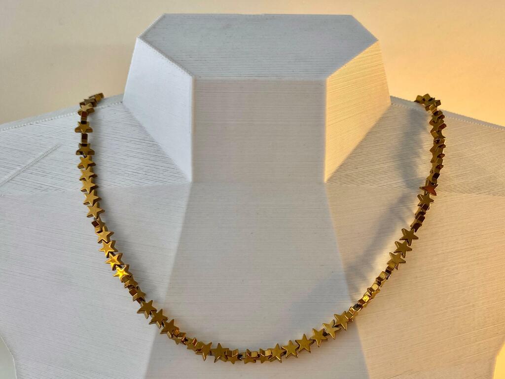 A peça que combina elegância e um toque vintage. Este colar com várias estrelas em cor ouro é perfeito para quem deseja adicionar um brilho especial ao seu visual.