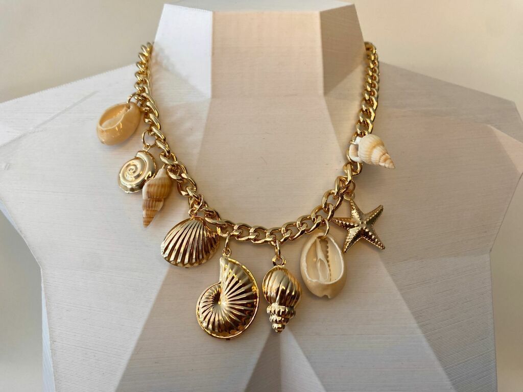 Com um design que combina búzios e conchas, ele é perfeito para qualquer ocasião, adicionando um toque especial ao seu look.